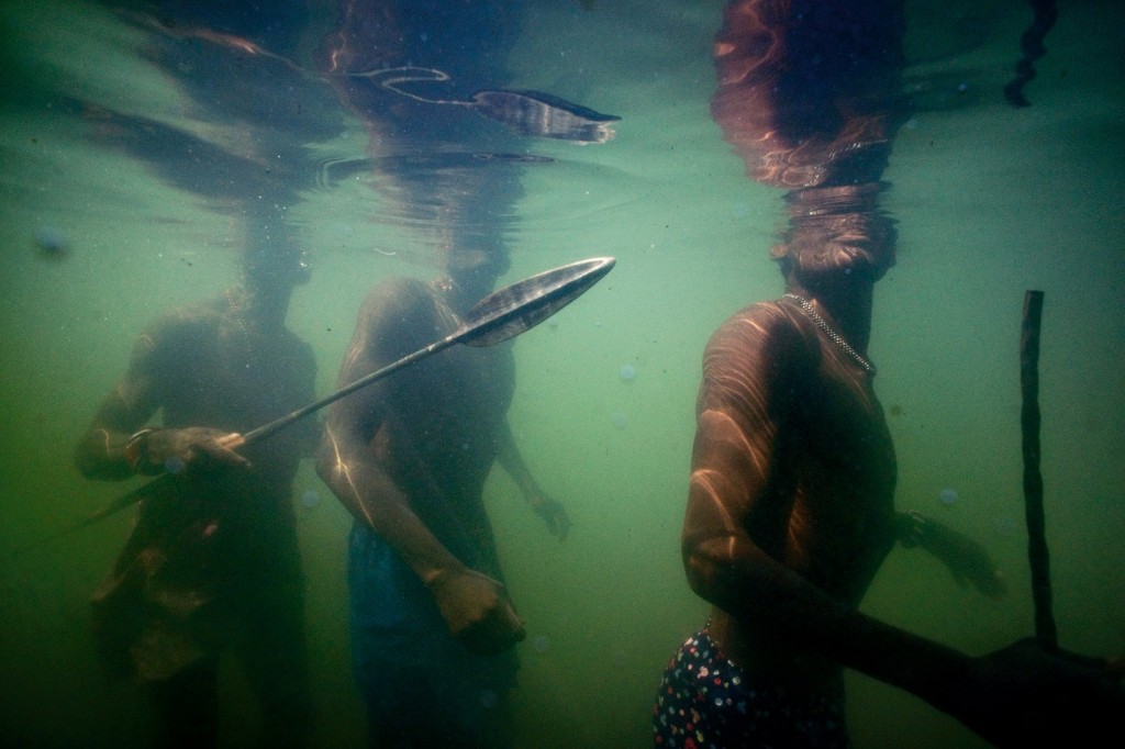 艾爾莫羅族的部落男子帶著魚叉與耐心,沿著圖爾卡納湖東岸用傳統方法捕魚。Photograph by Randy Olson