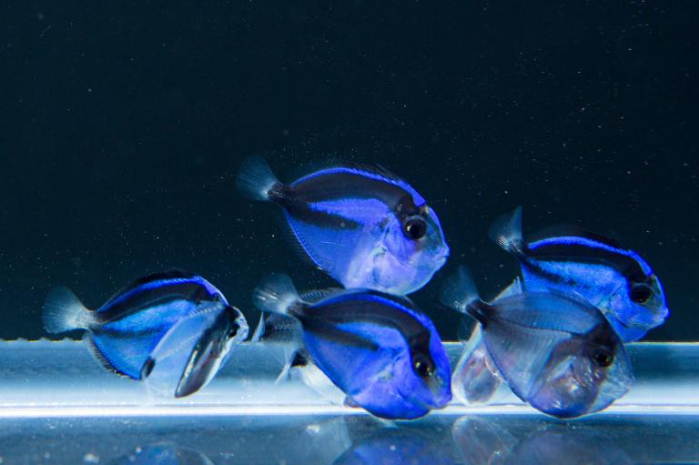 另一個造成海水水族養殖低迷的原因也是因複雜的技術問題。找來一對親魚讓牠們成功產卵僅僅是挑戰的第一步。在野外,藍倒吊親魚在水中同時釋放精卵受精後,稚魚孵化出來會在水中展開危險的奇幻浮游超過一個月才開始定居在珊瑚礁周圍。