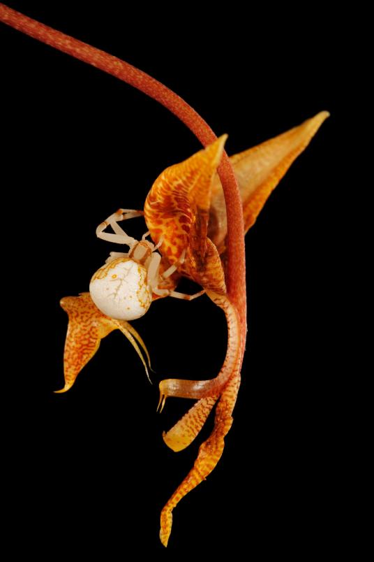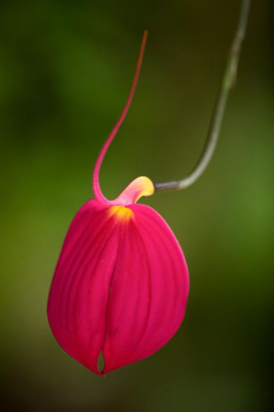 許多蘭花難以抵抗過度採摘的傷害。這株是在巴拿馬拍攝的三尖蘭(Masdevallia),野生三尖蘭經常受到非法採集,並販售給無良的收藏者。