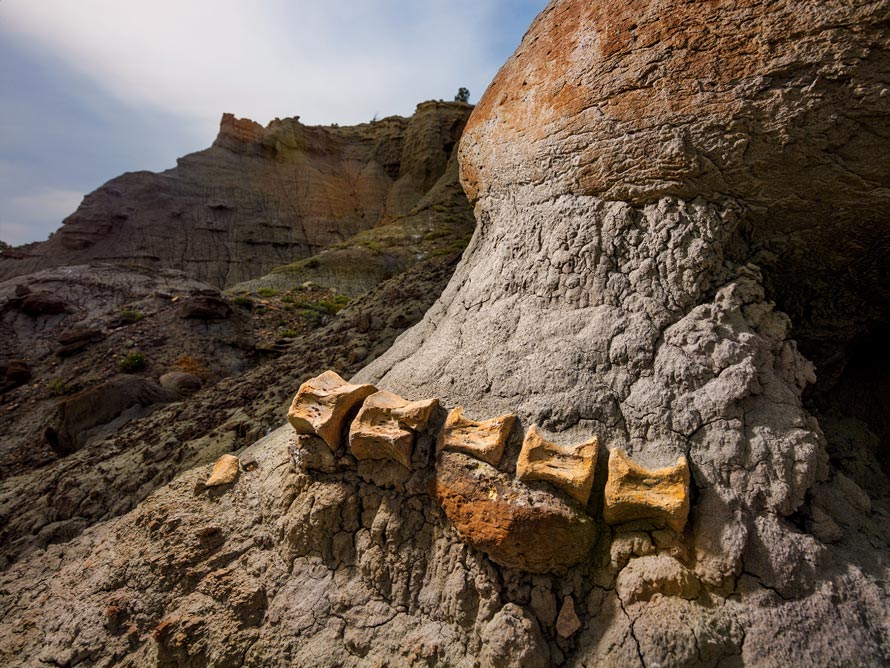 在一個寒冷的5月傍晚,瑟爾提克和志工比利.多蘭沿著山脊線行走——在猶他州南部化石藏量豐富的惡地,稜線通常是兩點之間唯一的移動路徑。