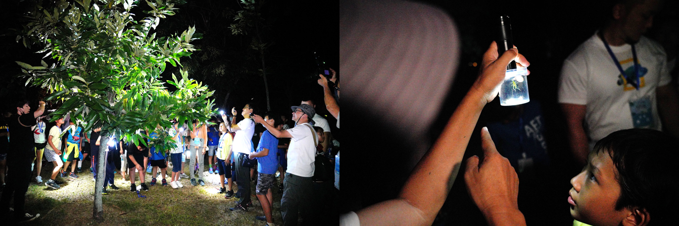 第一天,孩子們必須先拋下都市裡的習慣,改用五官閱讀這個世界,在老師帶領下前往故宮南院廣闊的自然園區,實地學習如何放大平日因五光十色的生活逐漸弱化感官機能,用聽覺屏氣凝神發現藏在樹叢間的蟲鳴鳥叫,用嗅覺聞日常生活隨手可得的葉子,像是當季水果芒果葉、芭樂葉、九層塔等等,用手指輕觸感受樹葉、樹枝紋理,了解並感受大自然其實就在身邊,只需要用心體會。在這之外更學習用工具觀察自然中多彩多樣的生物鄰居們,如鳥、蛙、蟲與植物,藉此開啟尋找自然寶藏的迷人過程。一入夜,孩子們將前往晚間的自然天地,感受與白天截然不同的生態風景。觀察完畢後,再回到室內來一晚難得的夜宿故宮體驗。