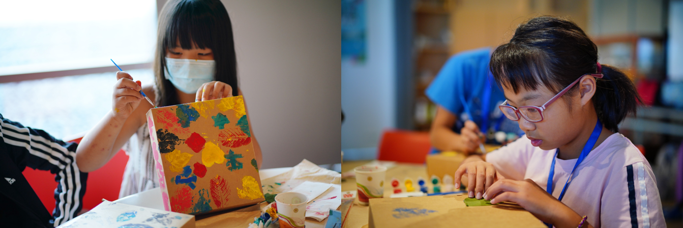 第二天課程以創作DIY活動打開孩子們創作魂,老師帶領學員們從無到有,打造獨一無二的個人多寶格,搭配課程中收集到的自然寶藏,並逐一加工後妥善收藏在多寶格內。中場也穿插一場生態小探險,帶領孩子找尋動物留下的足跡,學習如何利用石膏將精巧足跡翻製成自己的專屬記憶。最後,在老師們引領下,孩子們跟夥伴分享自己的多寶格創作理念,透過表達與欣賞,讓他們將所學到的知識、感悟到的美學彼此交流,創造學習的倍數放大。