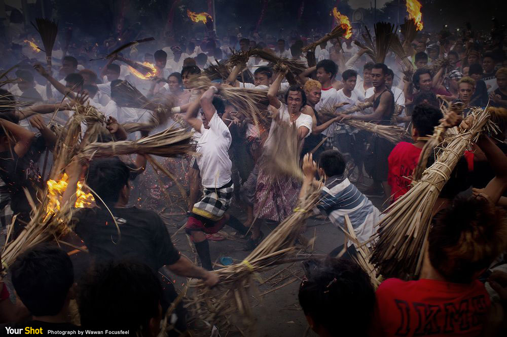 為迎接安寧日而準備的一系列活動,結合在地居民與環境。這不僅是一種為了歡迎龍目島上的印度教徒舉行的紀念儀式,還有更深的涵義,也就是在進入苦行歸隱的日子前,先淨化地球上的邪惡、除掉每個人身上固有的惡性。安寧日的活動開始時,人們會以點燃的乾草相互揮打,以去除人身上的惡念,昇華為善。(本作品來自〈你的觀點〉,同時收錄於每日精選App中20170206圖集。)