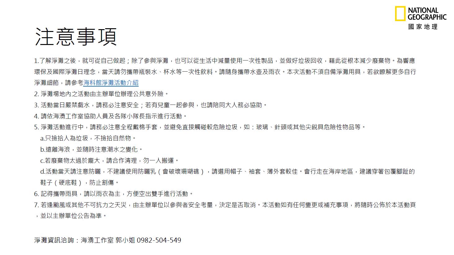 【行前通知書】2017國家地理世界海洋日-白浪逐垃圾淨灘行動