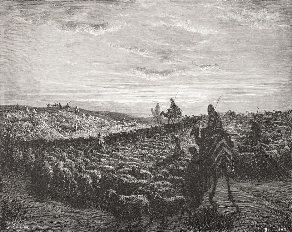 在這張19世紀的《聖經》插畫中,亞伯拉罕騎著駱駝進入迦南地。