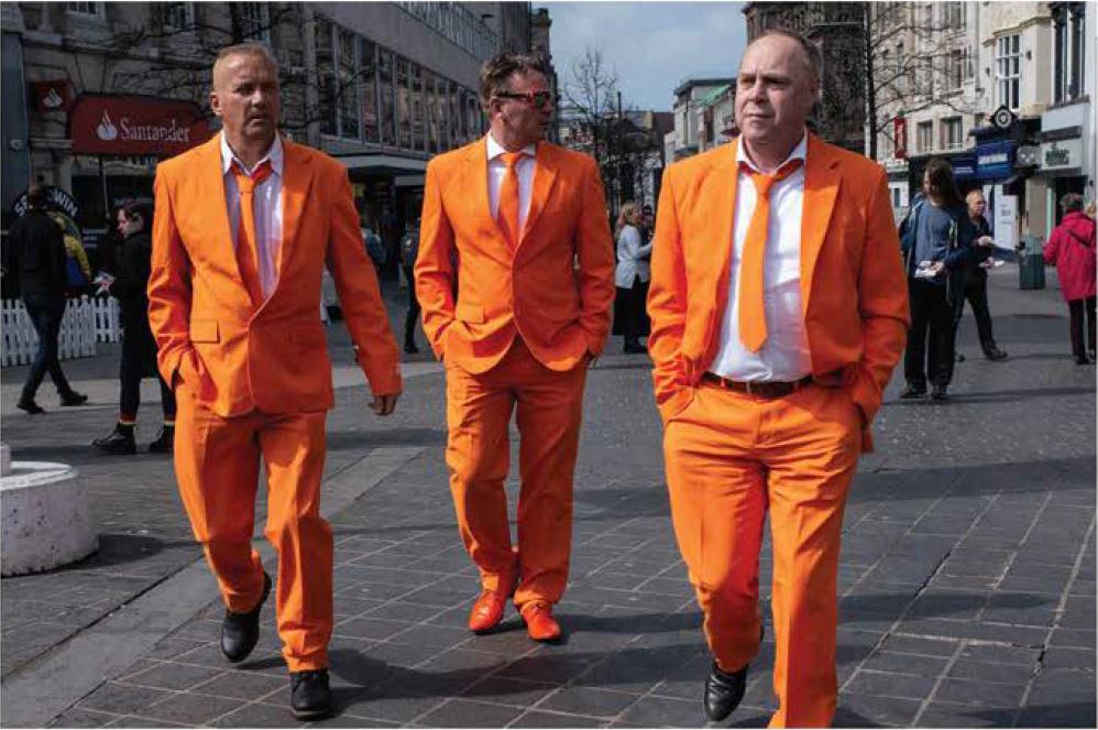 在場景中尋找一些同色系的元素(建議選擇比較鮮明的色彩,例如橘色、紅色或鮮藍色),拍攝一組包含六張照片的系列作品。剛開始進行這項任務時,最好先順其自然,耐心等候帶有你選定的那個顏色的醒目事例出現,然後找找看場景中有沒有別的東西是同樣的顏色。這兩樣東西可以靠在一起,也可以相隔一段距離;但只要兩者之間有距離,不論遠近,都要注意不要讓畫面太凌亂。
