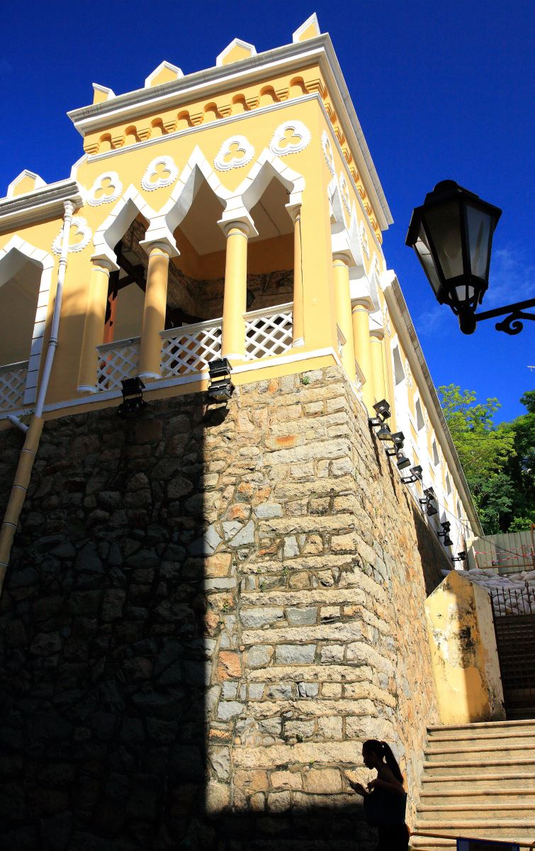 澳門最有名、最多人造訪、最多人留影的古蹟,非大三巴牌坊莫屬。其實「三巴」是聖保祿(São Paulo)的粵語諧音,在17世紀是遠東地區最大教堂的聖保祿教堂,原是聖保祿學院的一部分,而成立於1594年的聖保祿學院,是遠東第一所西式大學。1835年的大火,燒毀了聖保祿學院及附屬的聖保祿教堂,目前只剩下教堂前壁仍矗立在原址,因為形似中國傳統的牌坊,所以將之稱為大三巴牌坊,是澳門八景之一、也是聯合國認證的世界遺產。壁面裝飾採用許多中國元素,其中一層還有中國獅子造型的滴水嘴獸,種種精緻的細節是所有攝影師最愛細細觀察之處。也不妨考考自己的眼力,看看中國元素和西方風格如何融合並存。大三巴後方有地下墓室,膽子大的話也可以進去參觀。