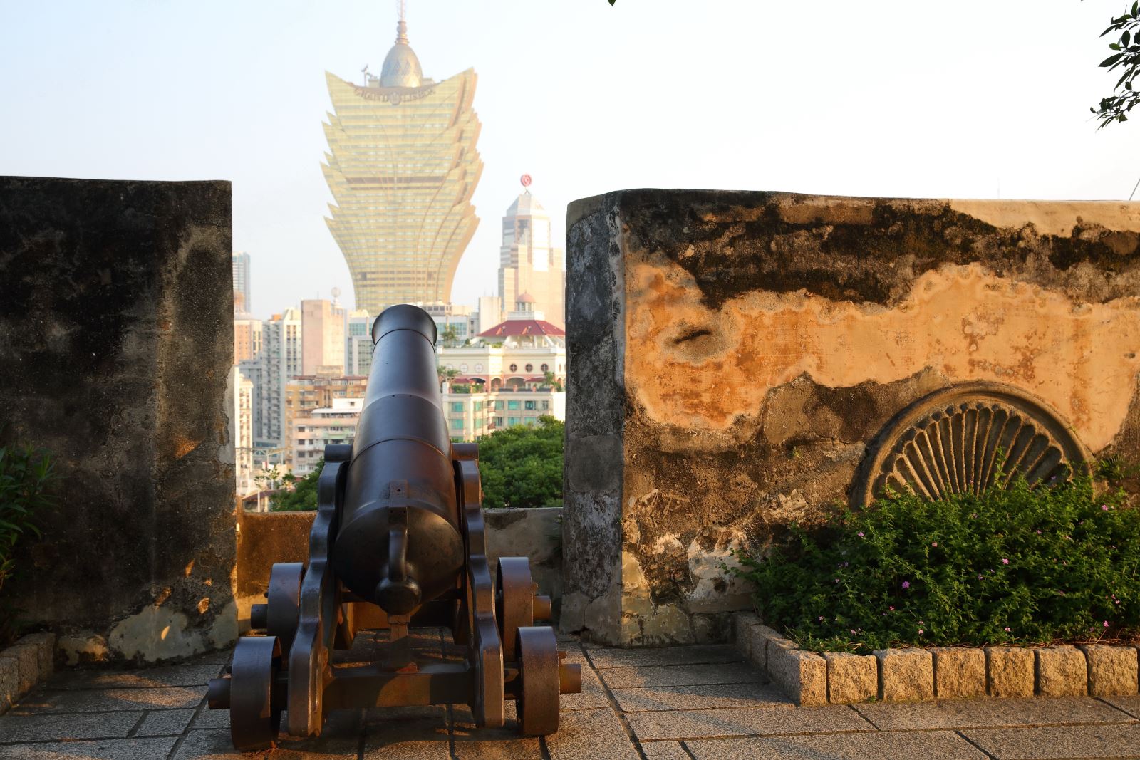 位於澳門古城區中央,位置居高臨下,可鳥瞰整個澳門景致,往北還能看到珠江口的風景,也是想紀錄澳門全貌不可不拍的地點,2005年正式列入世界遺產。在1617年時,為了要保護聖保祿教堂而興建了大炮台,所以又名聖保祿炮台,原始規畫中內有倉庫、營房,是功能完備的要塞。但目前的聖保祿教堂已經只剩下教堂前壁,也就是大三巴牌坊。大炮台裡有澳門博物館,若想深入了解澳門歷史文化與藝術文物,這裡就是最好的起點。
