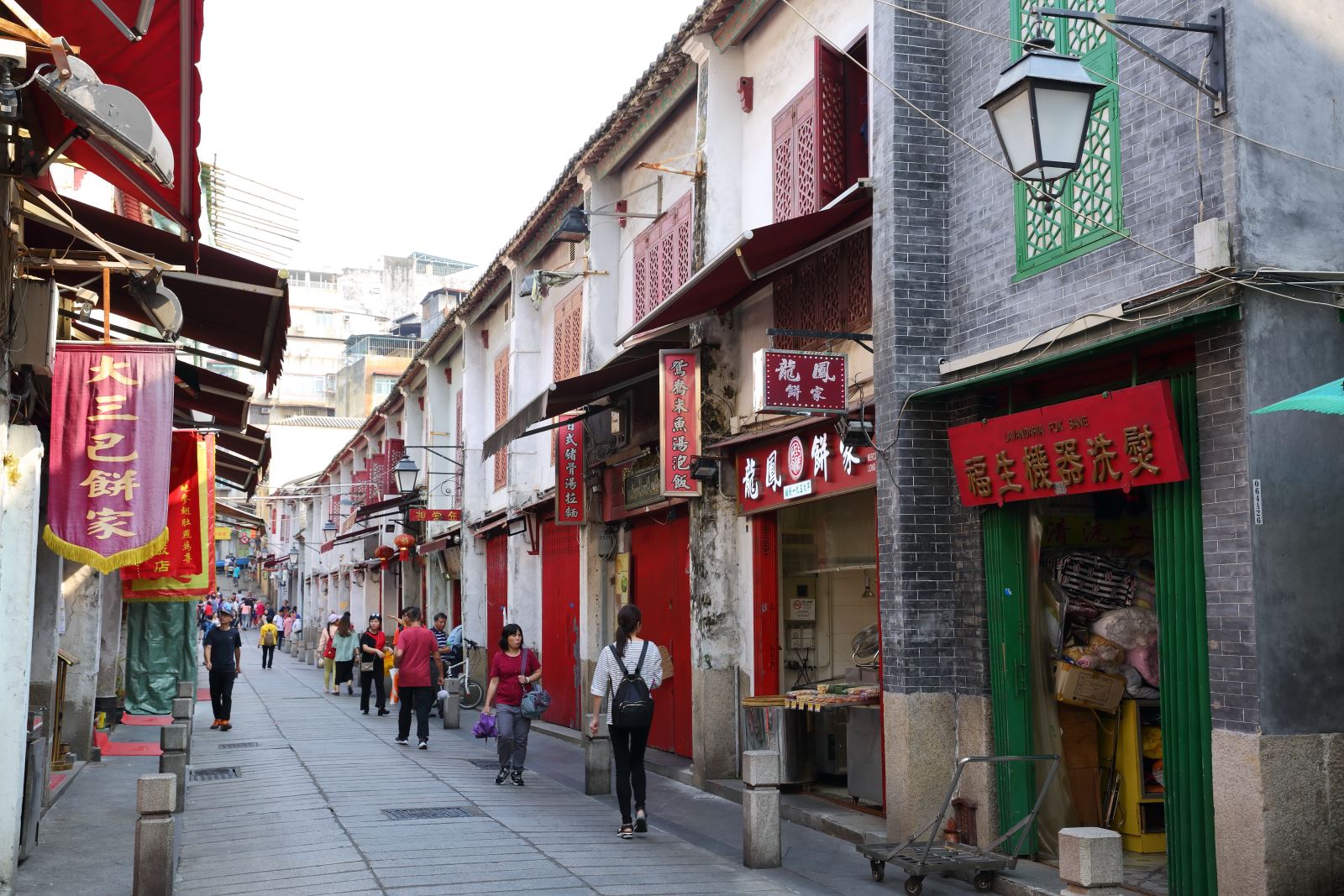 是澳門著名的老街,兩側建築物全都是中式兩層樓房,紅門紅窗,齊整古樸。據說過去其實是青綠色門窗,所以現在也有一兩家重新漆回青綠。石板路面與澳門其他地區的歐洲風情迥異,展現出純粹的中式特色,如今是澳門最出名的觀光購物美食街區。許多知名老店前總是有長長的排隊人龍。據說王家衛的電影《2046》曾在福隆新街上的新華大旅店取景,有許多遊客選擇入住這間知名的平價百年旅店,嘗試捕捉旅店內彷彿時光倒流回清末民初的布置與氣氛。