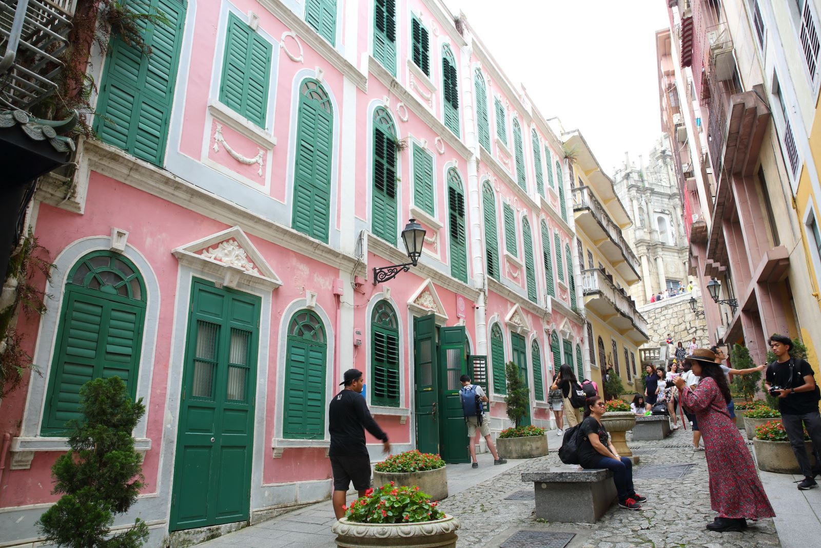 其實只有短短50公尺的戀愛巷,可直通大三巴。原名為Travessa da Paixão,Paixão意為迷戀和激情,相當於英文的Passion,但這個字也有耶穌受難記的意思。因為附近大三巴右街的葡文名為Rua da Ressurreição,復活街,所以考證起來,這條街應該本來是以耶穌受難為名吧。但兩旁建築都是嫩黃或粉紅,一踏進來真的會忍不住少女心大起,拼命按快門。澳門文化局在戀愛巷裡規劃了「戀愛‧電影館」,是電影欣賞、本土影像保存以及電影書籍閱覽的空間,每個月都有不同的主題影展。戀愛巷裡還有一家「戀愛七號旅館」,是由古宅整建而成,也是澳門第一家文物旅館,粉牆、綠窗,吸引無數遊客駐足拍攝。大廳內陳設著澳門第一家領照的中藥店杏和堂的百年木櫃,與石磚牆相互輝映,展現出不同於屋宇外牆的樸實溫厚文人特質。