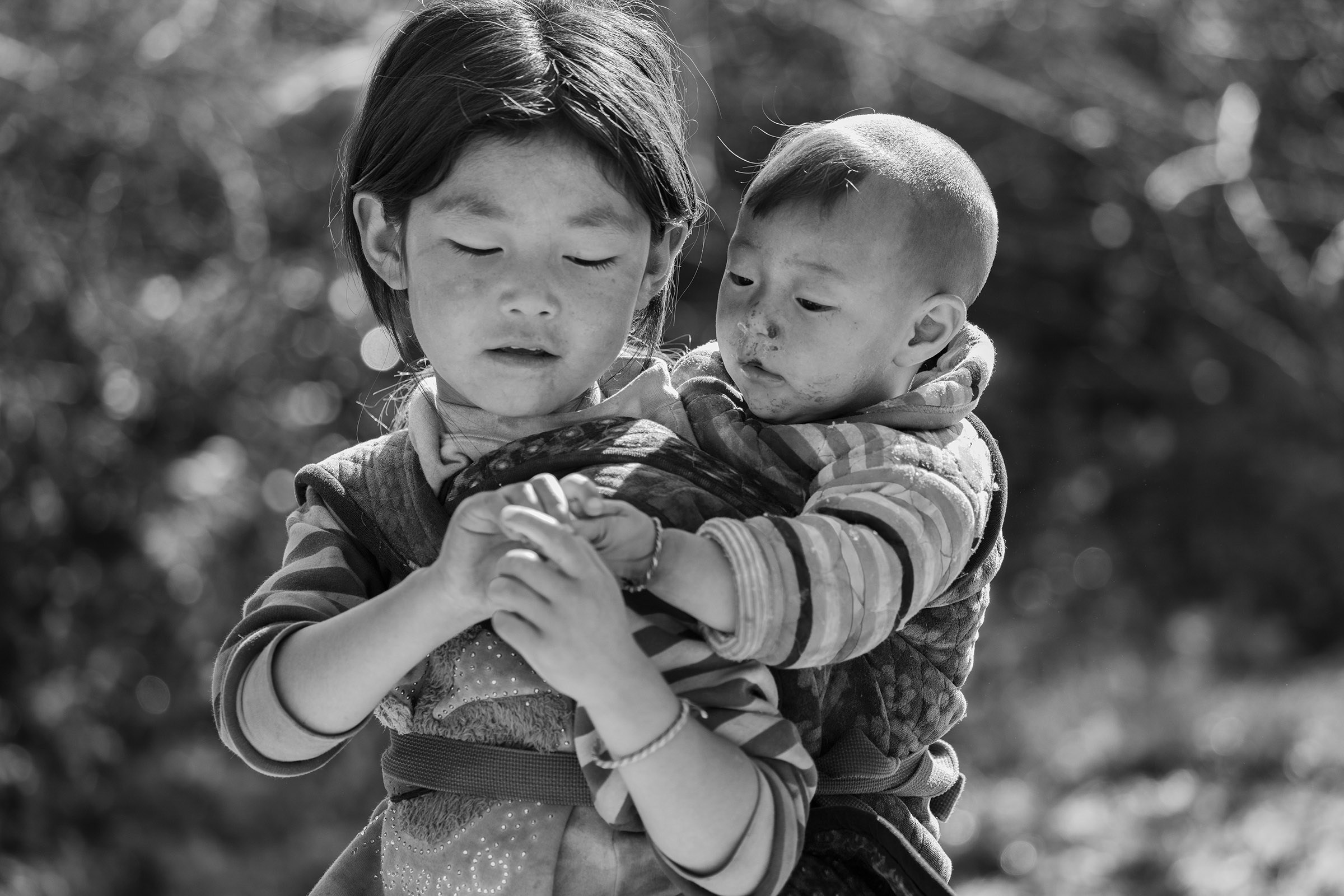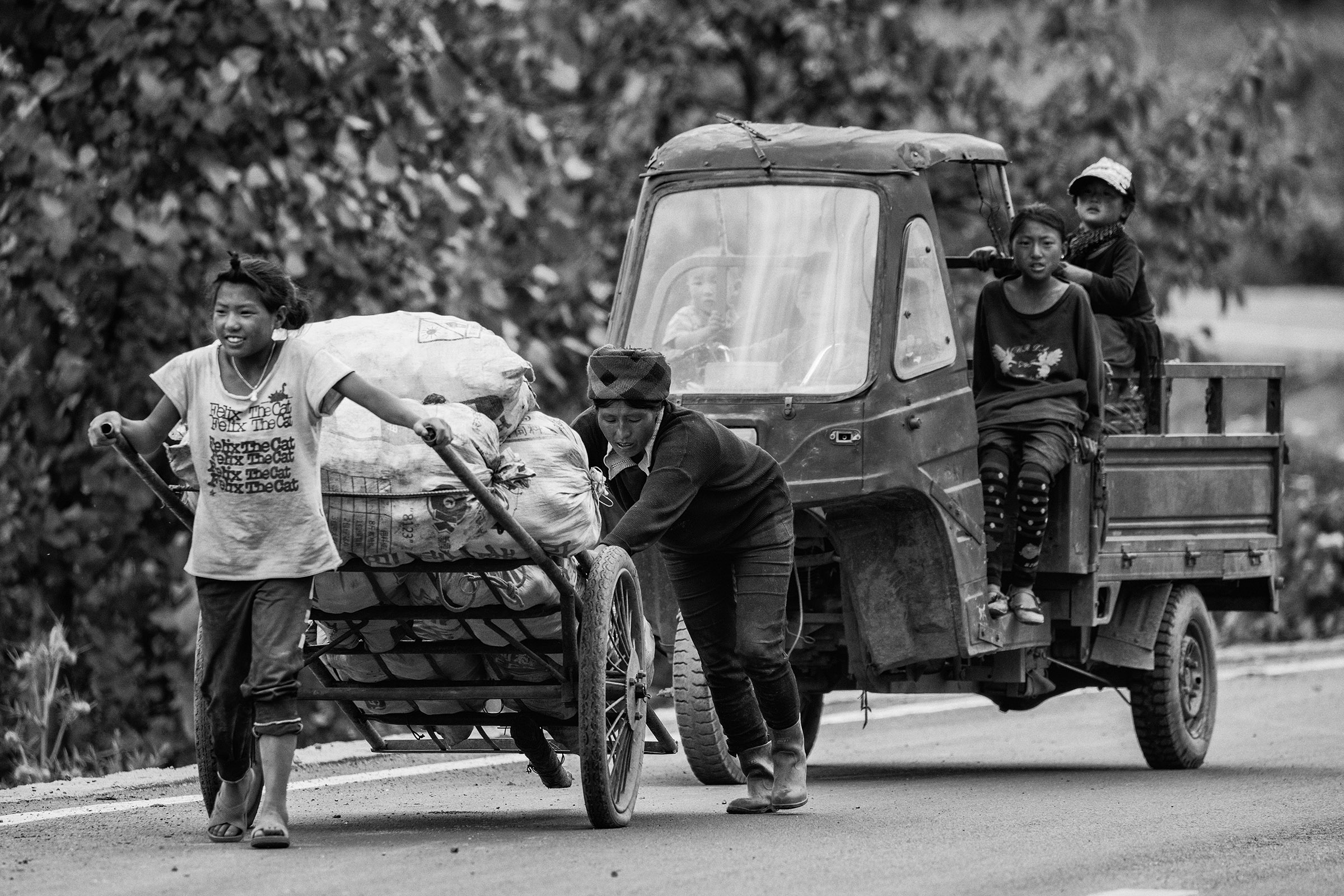 來到大涼山,放眼望去全是辛勤工作的民眾,其中女性的工作者,佔了不小比例。大涼山女人的一天,看到的是涼山女人堅忍不拔的一面;在大涼山山上,女兒一生下來,就被訓練成為家庭的好幫手,從幫助父母帶領弟妹、扮演小母親的角色;平時也需要幫忙洗全家的衣服,山上沒有自來水,需要將整簍的衣服搬到河邊,用河水清洗衣服。洗完衣服,要分擔照顧弟妹的工作,在大涼山,襁褓中的嬰兒,沒有睡在搖籃裡,清一色都是由家裡的小姐姐用布帶揹在身上,她們像小母親,對弟妹呵護備至,從小大涼山女人就被訓練成全能的女人,一人扮演著清潔婦、褓母及農民等角色。當馬鈴薯田收成時,她們也順理成章在農田裡採收及搬運馬鈴薯。