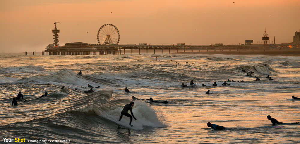 冬季的嚴寒加上北海的冰凍水域,對衝浪者來說並非慣常的環境——不過話說回來,或許就是因為這樣才顯得酷啊。照片中的背景是斯海弗寧恩碼頭,它是荷蘭海牙的地標。(本作品來自〈你的觀點〉,同時收錄於每日精選App中20170403圖集。)
